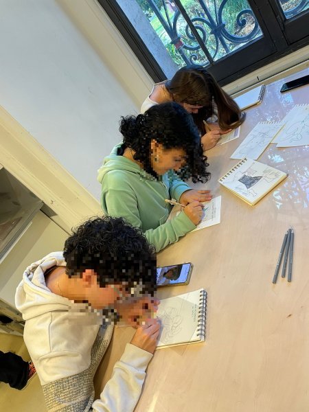 La matinée a été consacrée à un atelier de pratique artistique avec un plasticien professionnel qui a initié le groupe à la Technique de l’estampe. Les élèves ont pu ainsi dessiner, graver, puis encrer et passer sous presse. Après une pause pique-nique dans le jardin du Petit Palais, l’après-midi a été consacrée à la visite de l’exposition Greuze.