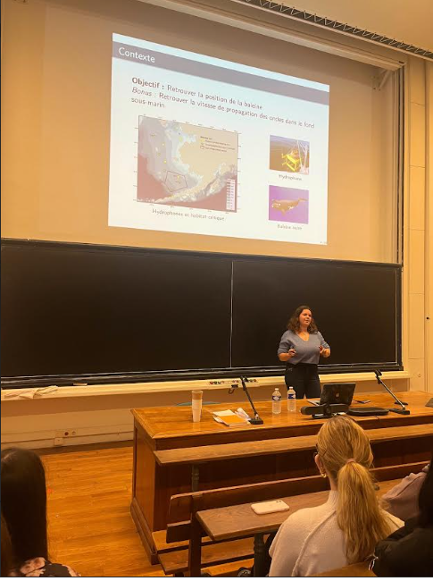 Dans la matinée, une chercheuse en mathématiques est venue échanger avec elles. Elle a partagé avec enthousiasme son parcours académique ainsi que les résultats de ses recherches sur la localisation des baleines en Alaska.